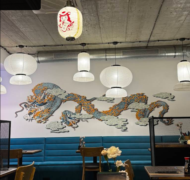 Lubimy, gdy ściany opowiadają historię. W restauracji azjatyckiej Far East miała powstać ściana, która będzie od razu mówiła "tu jest Azja". Padło na smoka – i to nie byle jakiego. Zaprojektowaliśmy potężnego, dynamicznego smoka w intensywnych barwach. Efekt? Goście robią zdjęcia ścianie tak często, jak jedzeniu :)